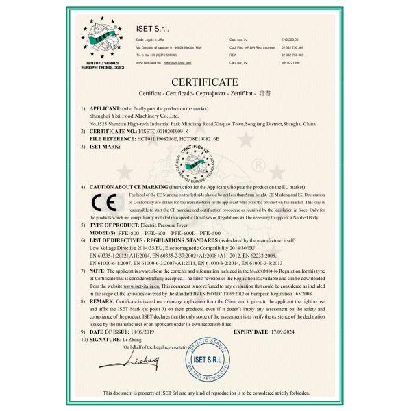 shanghai Yixi Food Machinery Co., Ltd. has performed outstandingly in quality management and took the lead among its peers in passing the ISO9001 international quality management system certification.